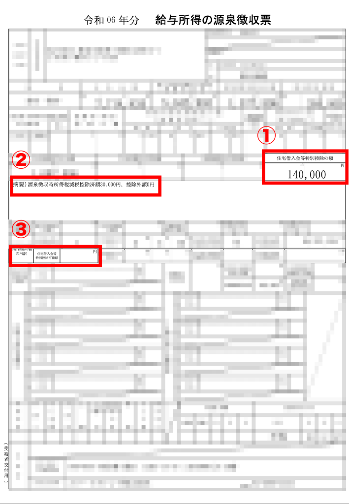 - 住宅借入金等特別控除の額に「140,000円」の記載がある
