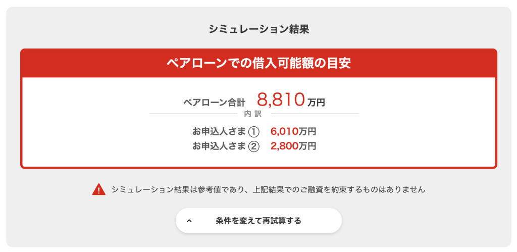 借入可能額は2人合計で8,810万円までが目安でした!