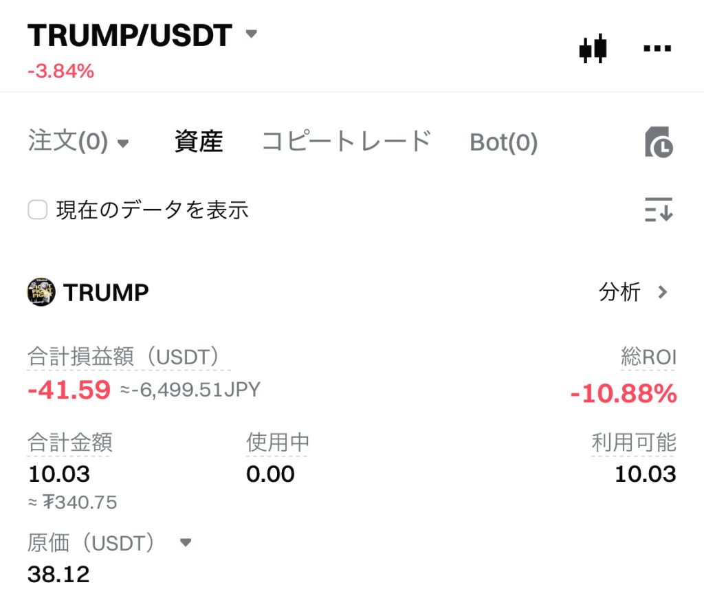 というわけで、超高騰したトランプコインだけど私は波に乗れず、ちょい損です。笑